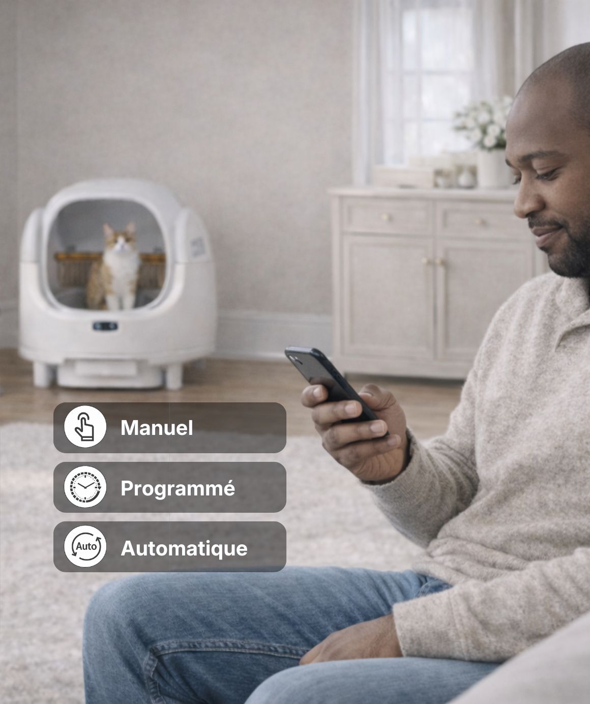 Équipée de technologies intelligentes avancées, cette litière autonettoyante offre un niveau de contrôle et de confort supérieur. Elle automatise l'entretien, améliore l'hygiène et vous libère des corvées quotidiennes.